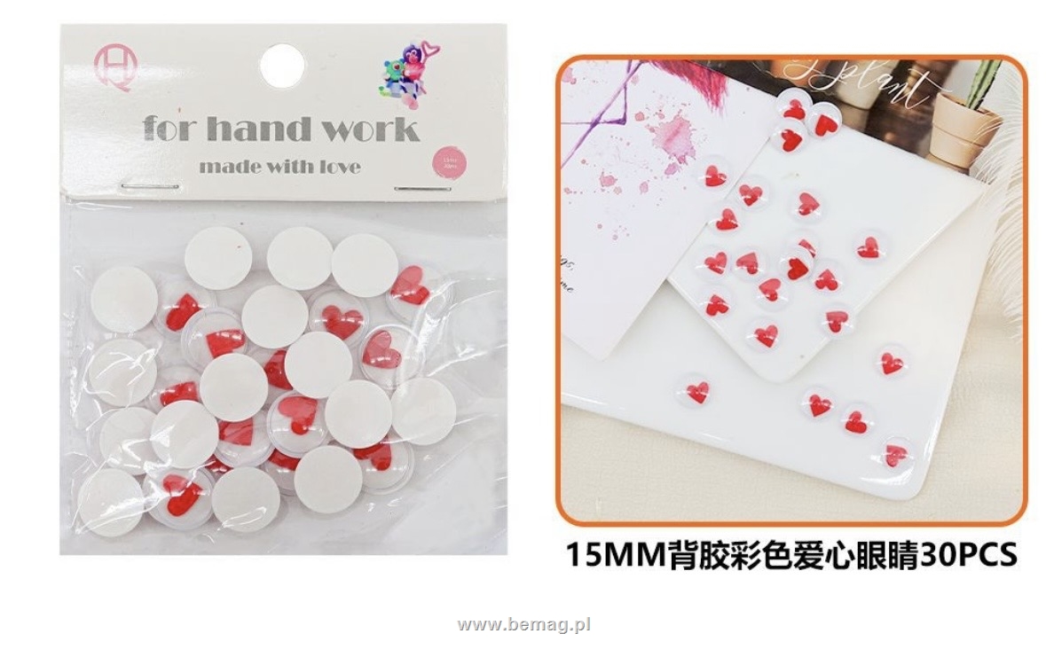 Wypukłe oczka z serduszkami naklejka 15mm 30szt 64831