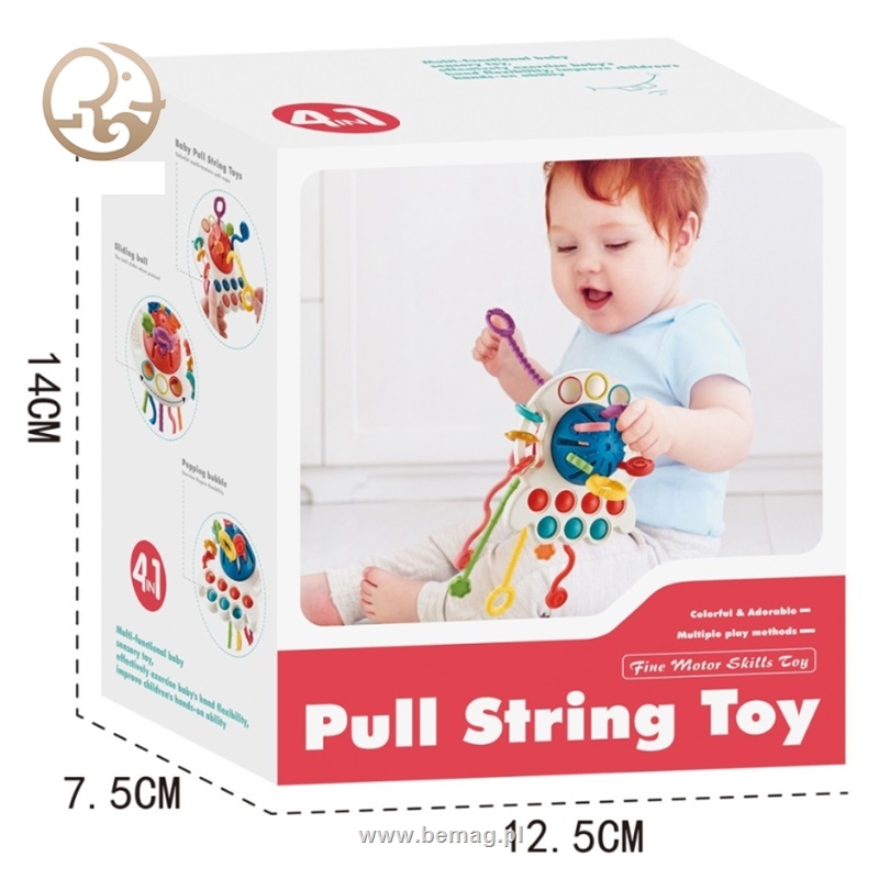 Zabawka sensoryczna 4w1, 5 sznurków do przeciągania, wbx13x15,5x10 cm