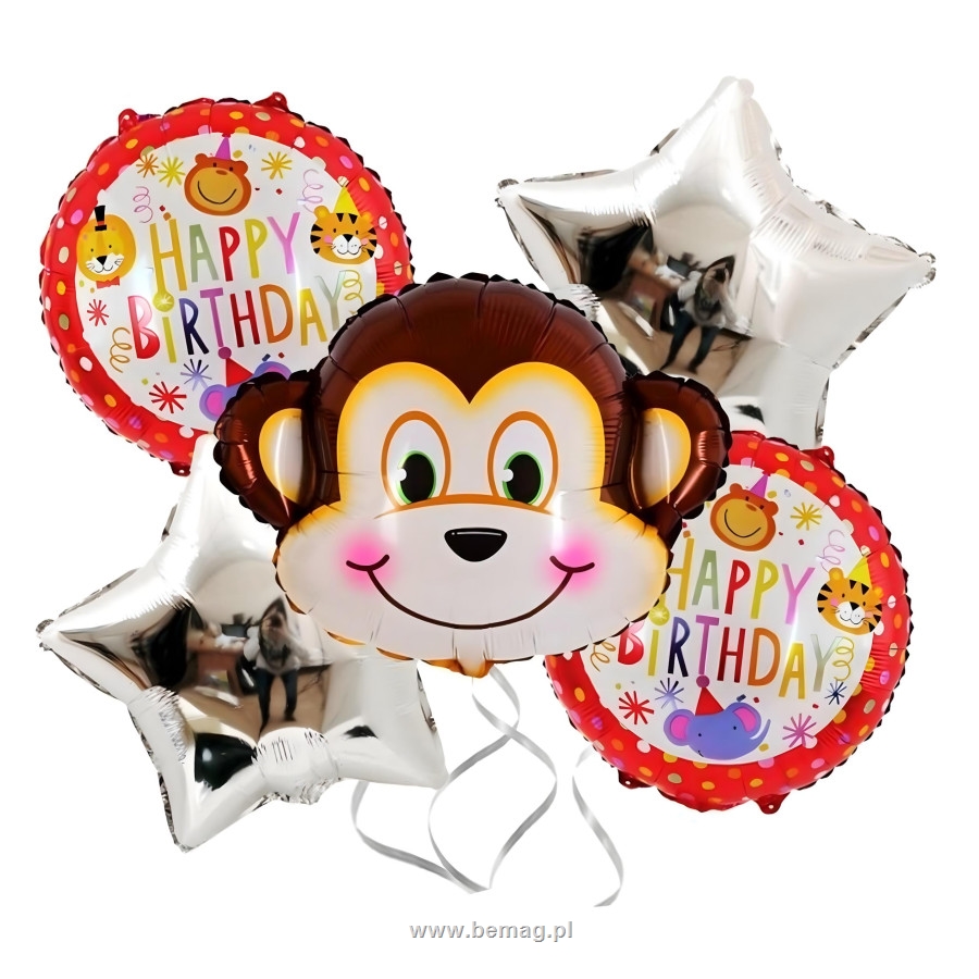 Zestaw Balonłw Urodzinowych Mapka Zwierzta na Urodziny Przyjcia 5 szt RC-K-1875