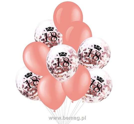 Zestaw balonów 18 urodziny z konfetti rose gold 12cali 400503