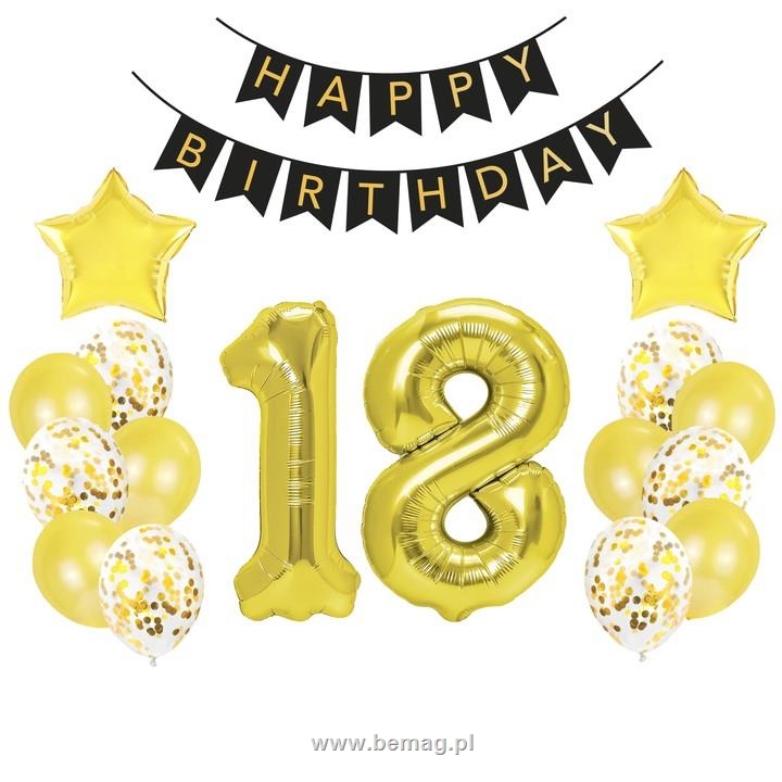Zestaw balonów na 18 urodziny złoty duży 460475