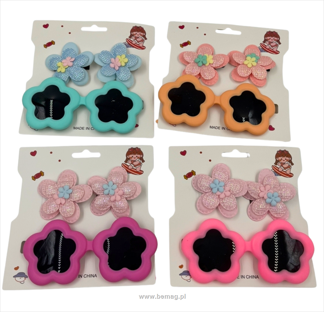 Zestaw dla dziewczynki spinki kwiatki+okulary przeciwsłoneczne kwiatki 91055