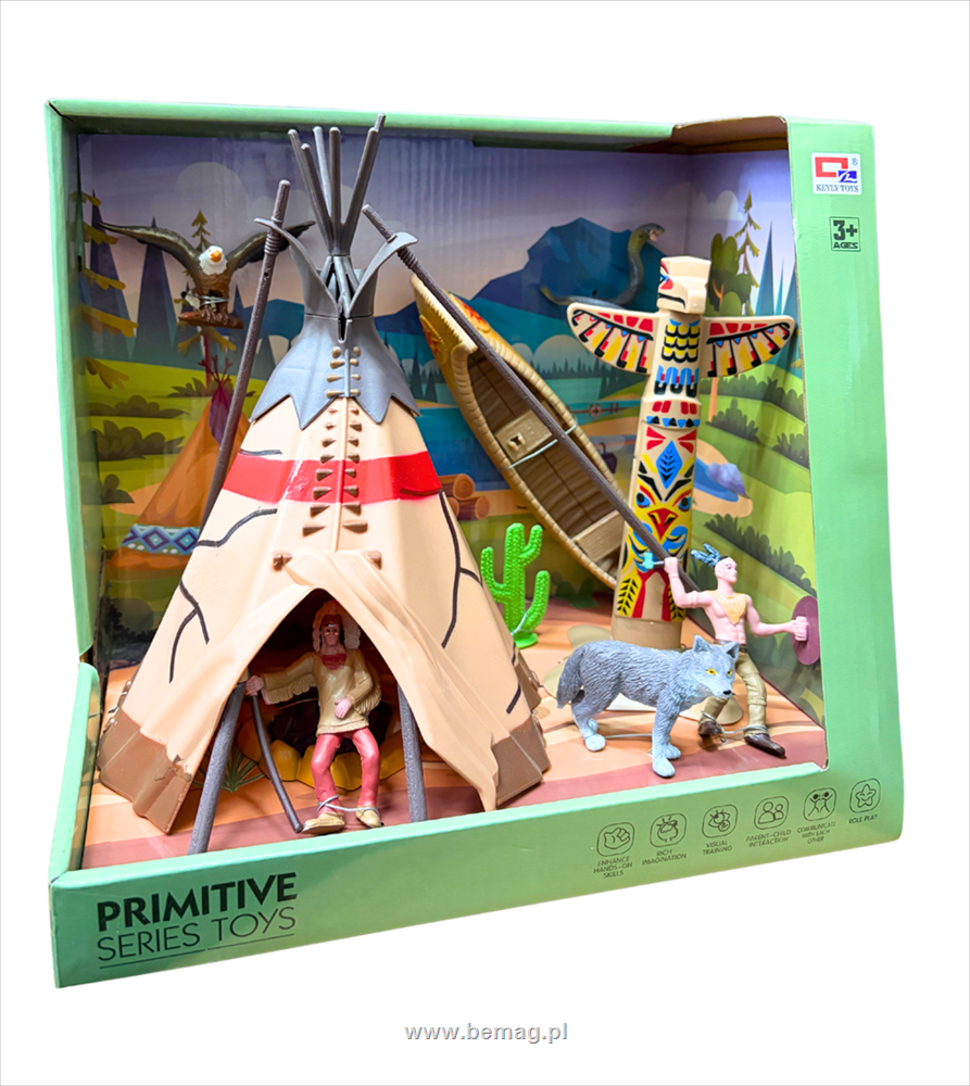 Zestaw - indianie,namiot tipi,canoe,totem indiański+7 akcesoriów,wym.o