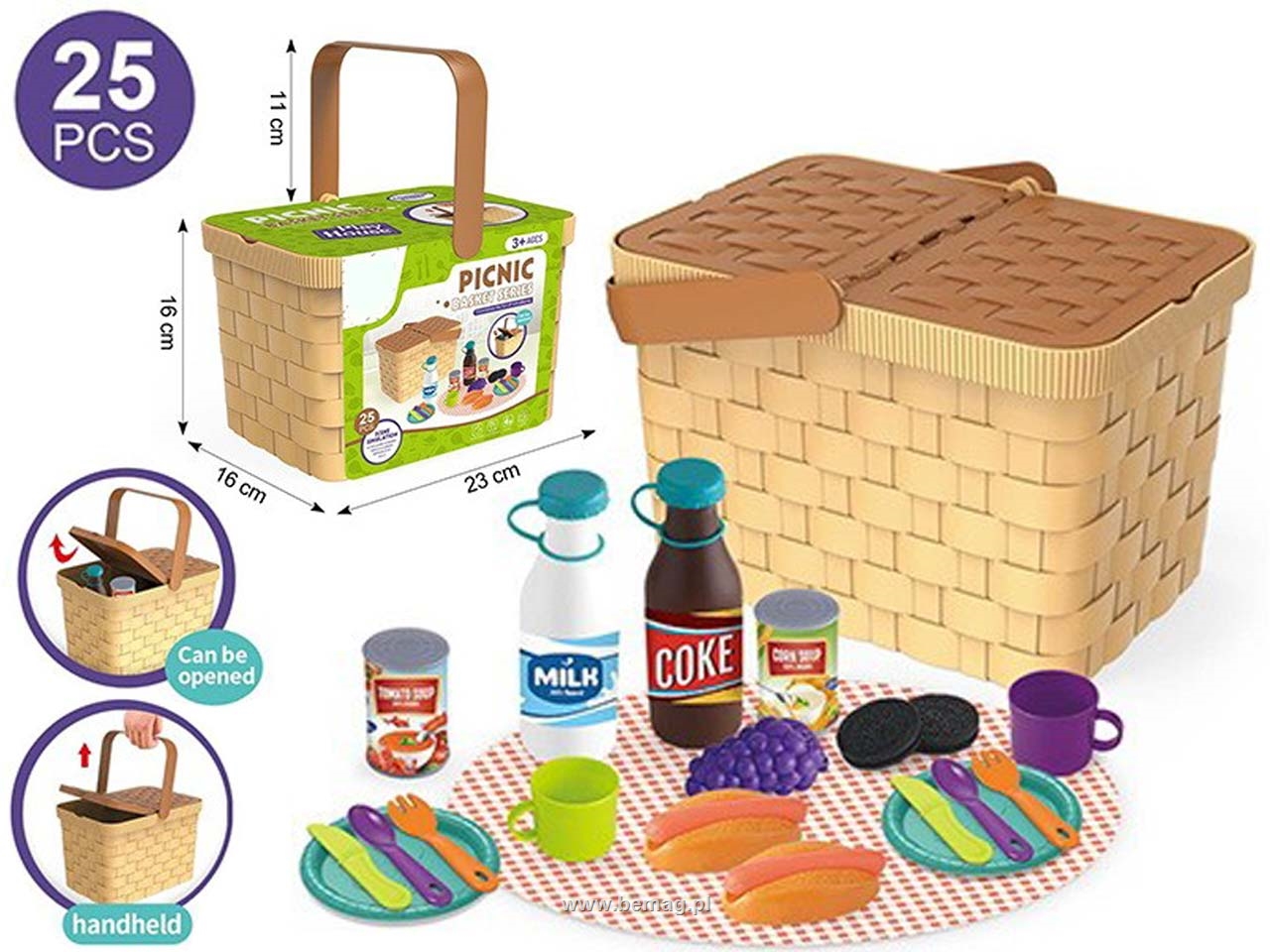 -Zestaw kosz piknikowy 25 el rozm koszyka 23x16x16cm