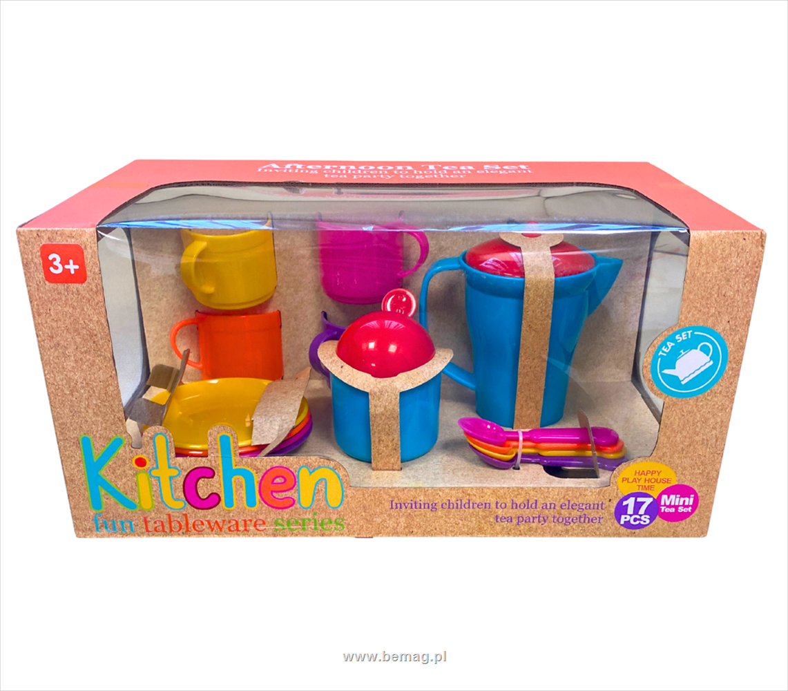 Zestaw naczyń,17 elementów,wym.obx:65x40x9 cm,czajnik,kubki,sztućce.