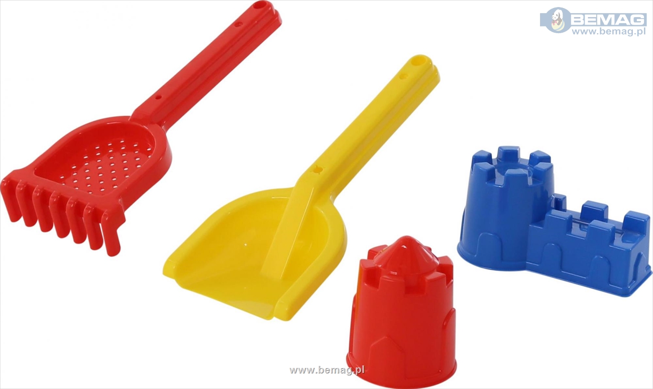 Zestaw Nr568: łopatka Nr30, grabki Nr30, foremki (zamek most + zamek wieża)