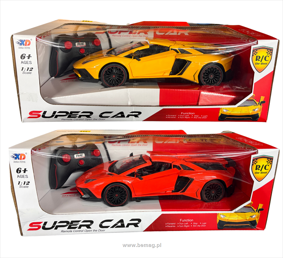 Auto sportowe 30x14x8,54cm na radio, skala 1:12, jazda przód/tył, skrę