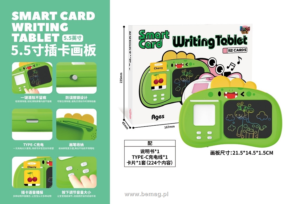 Fiszki do nauki języka z kolorową tablicą do rysowania LCD, w zestawie