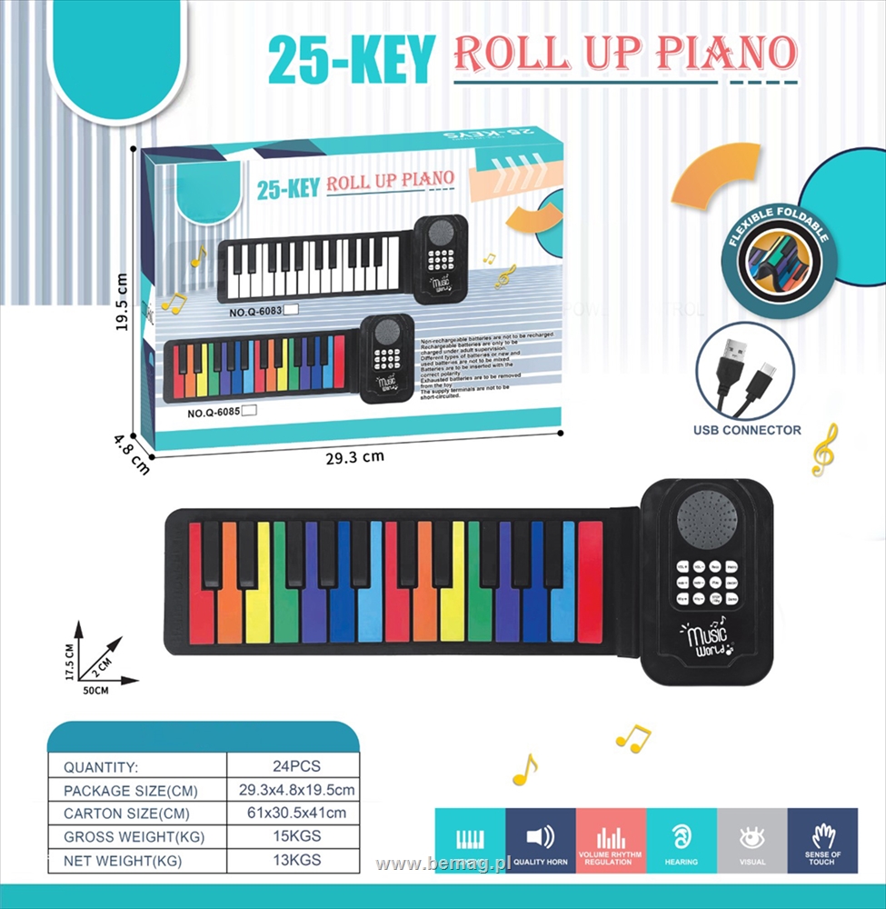 PROM Keyboard zwijany 25 klawiszy, demo,regulacja głośności, nagrywanie i
