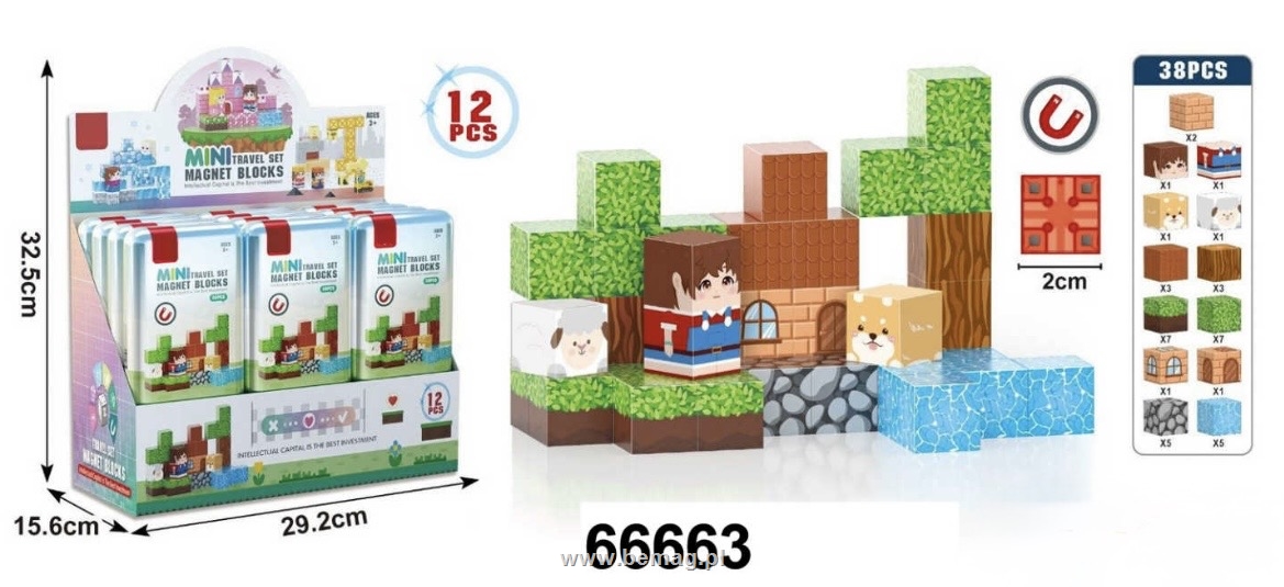 Klocki magnetyczne w metalowym pudełeczku zielone 38el 66663