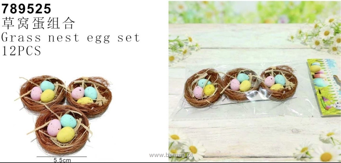 Ozodba wielkanocna gniazdko z kolorowymi jajeczkami 5.5cm 789525