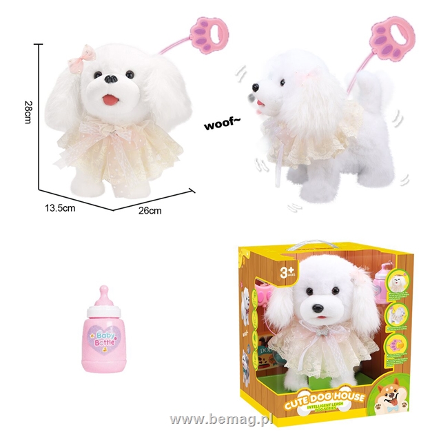 Piesek pluszowy b/o na smyczy, dźwięki, chodzi, funkcja nagrywania, za