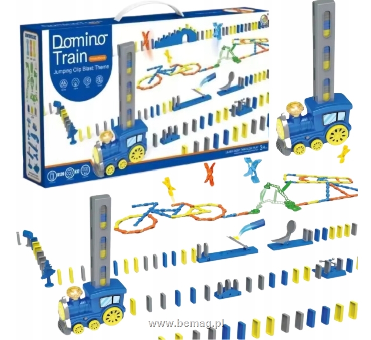 Pociąg-domino,120 klocków,11 kombinacji,6 m długość zabudowy,wym.cbx:2
