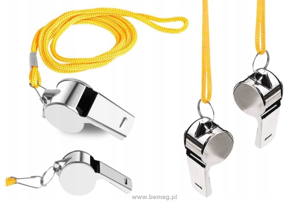 S.CENA 20974 - Gwizdek Sędziowski Z KulkąMetalowy Żółty Sznurek 40cm - 5905991035381