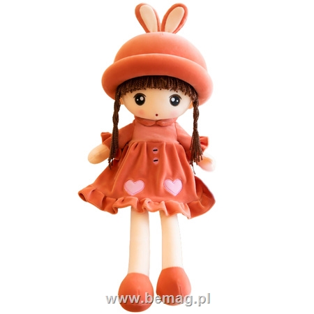 S.CENA 22485 - Lalka Szmacianka Miękka Pluszowa Czerwona Sukienka Z Falbanką 45cm