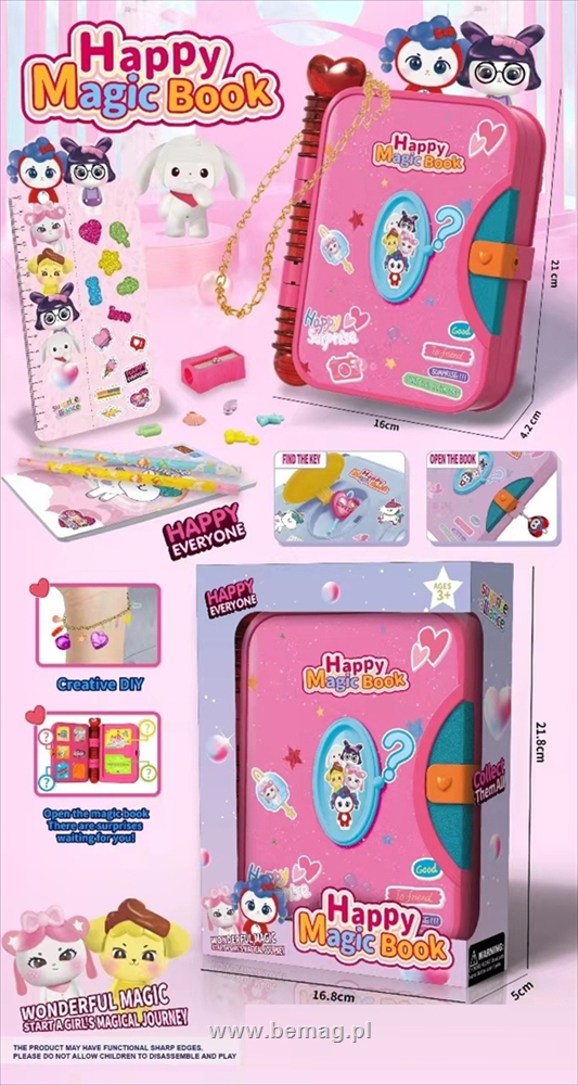 Sekretnik zamykany na kluczyk, 6 zamykanych skrytek, w zestawie notatn