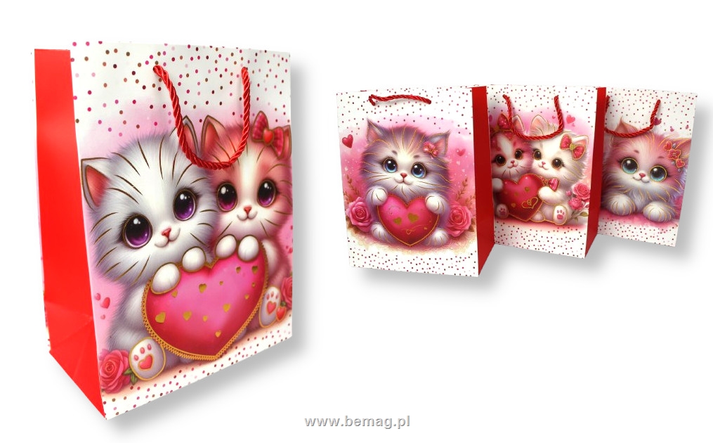 Torba prezentowa G HOLO sztywna KOTEK 32x26x12 cm MIX WZORÓW LPR-G32