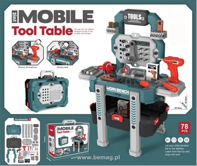 Zestaw narzędzi, stół narzędziowy (81.5x67.5x36.5cm) składany w walizk